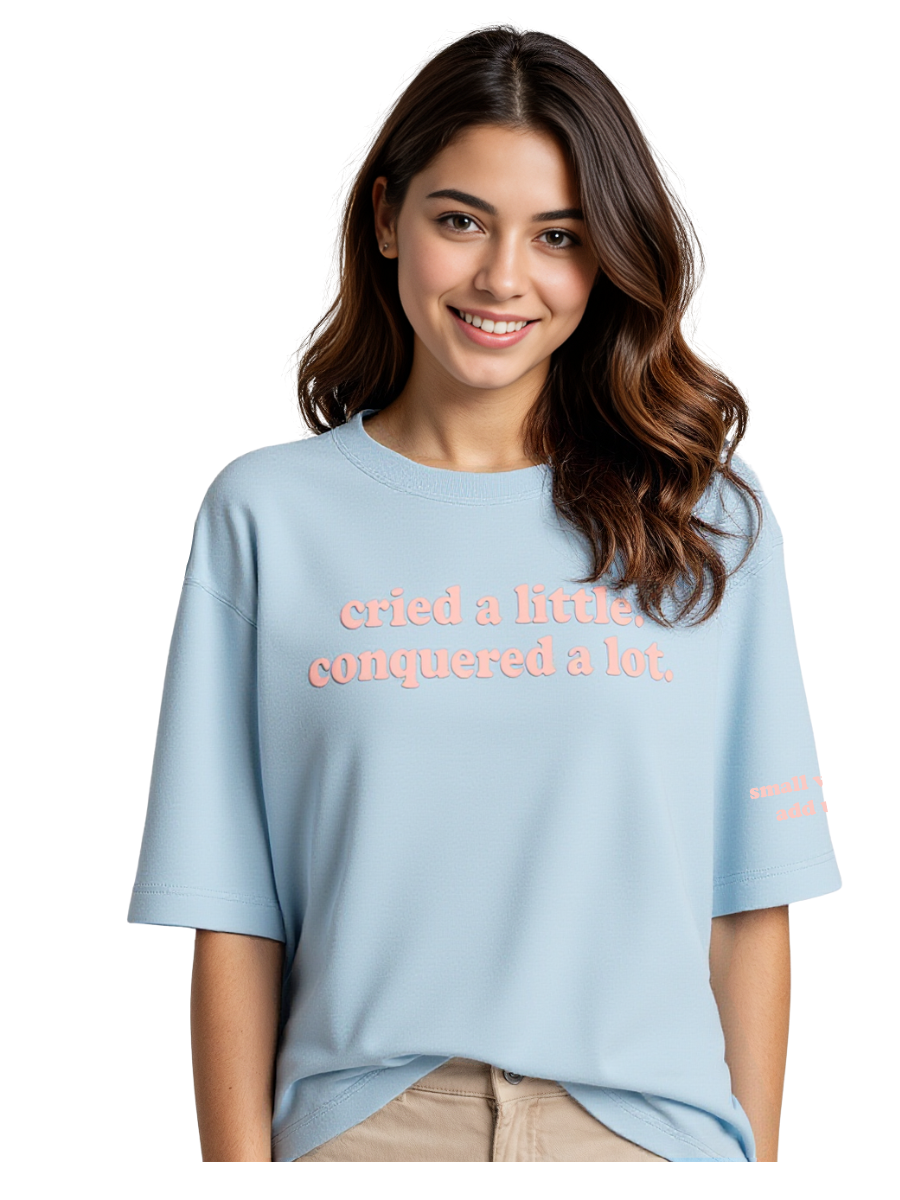 Soft but unshakeable. This sky blue oversized tee says you’ve felt it all—and still showed up.