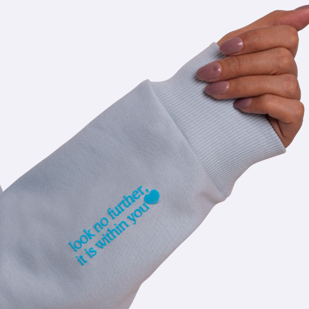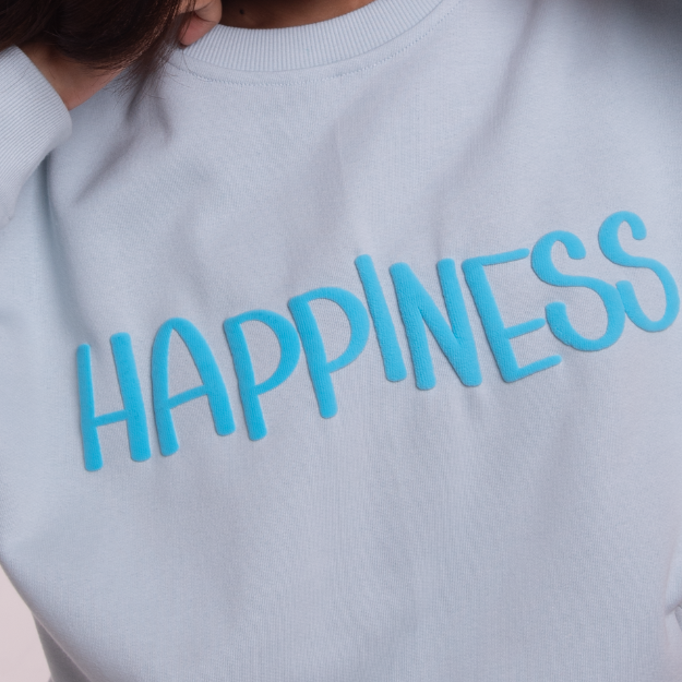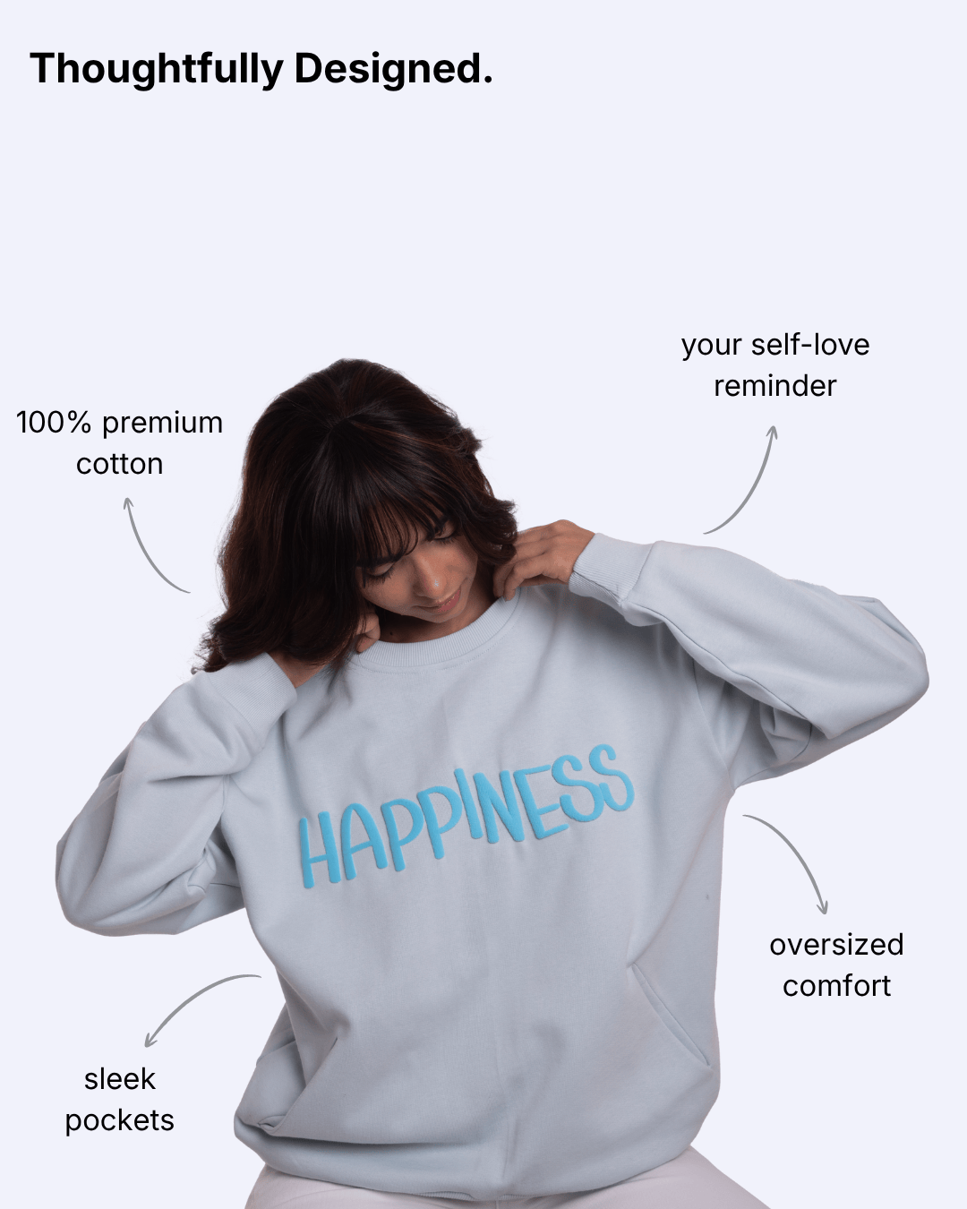 Wrap yourself in soft reassurance with the Happiness sweatshirt in Powder Blue.