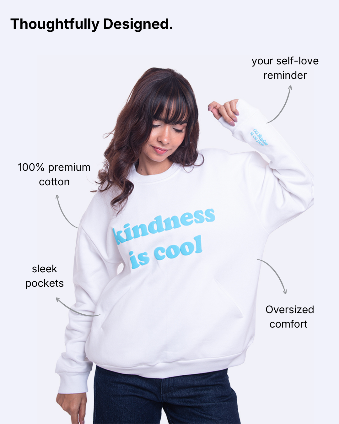 Wrap yourself in comfort and quiet confidence with the Kindness Is Cool sweatshirt.