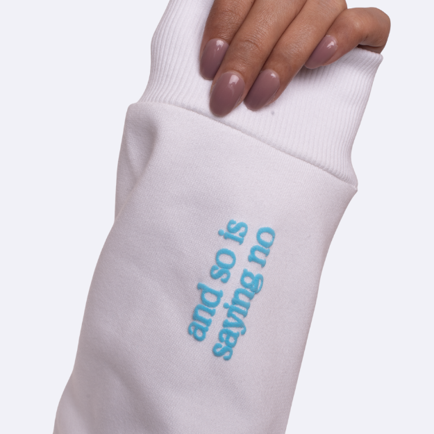 The quote “kindness is cool and so is saying no” is finished in raised puff print, adding soft texture, premium lift, and a tactile reminder to choose yourself gently.