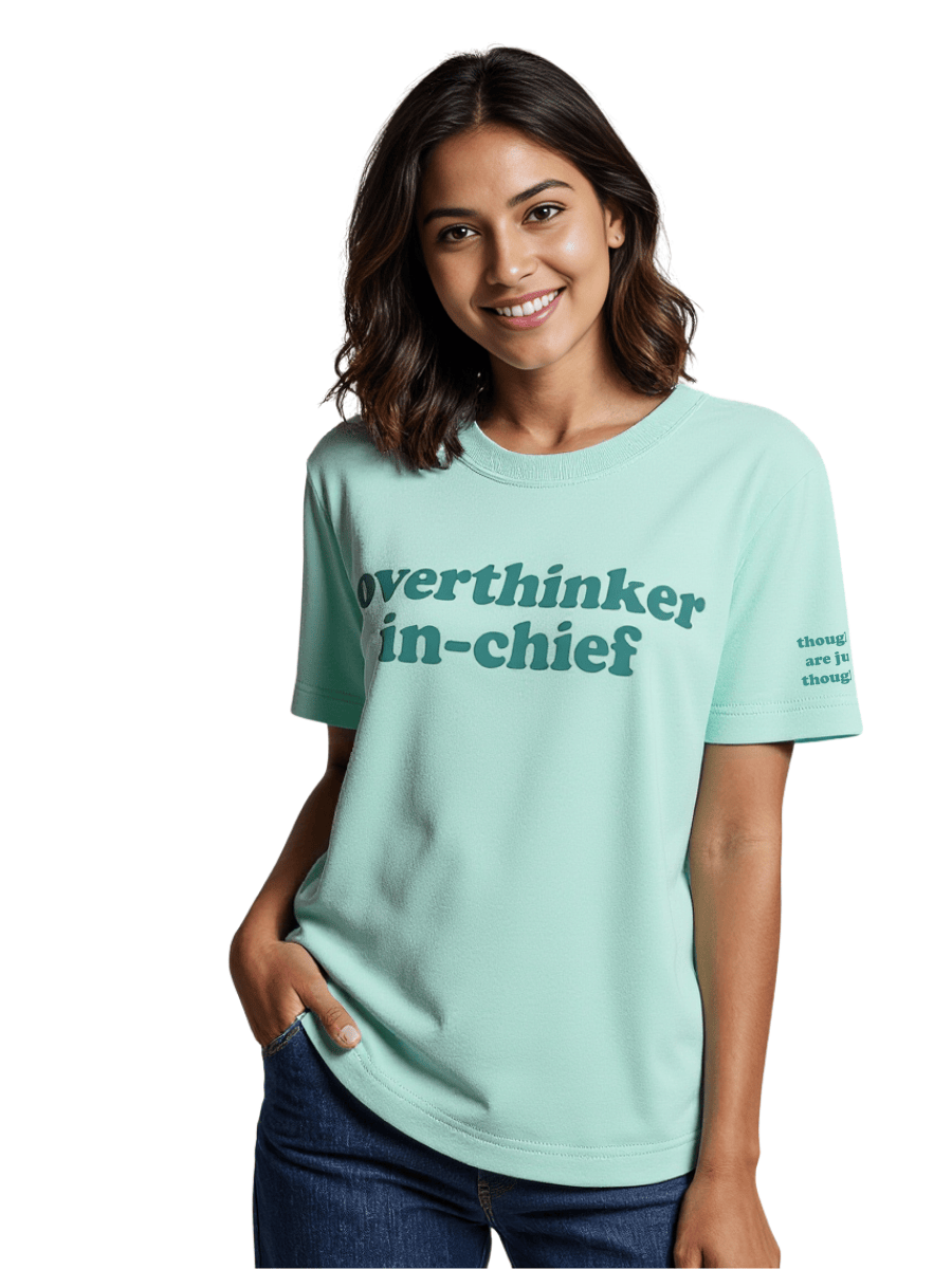 At Project Ezza, we believe overthinking isn’t a flaw—it’s part of your magic. This tee is for every self-aware soul who’s learning to pause, breathe, and laugh at their own thoughts.