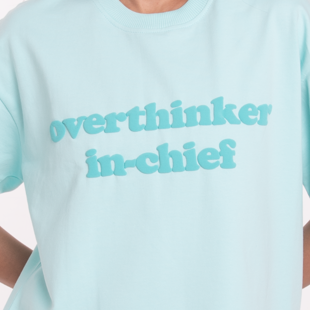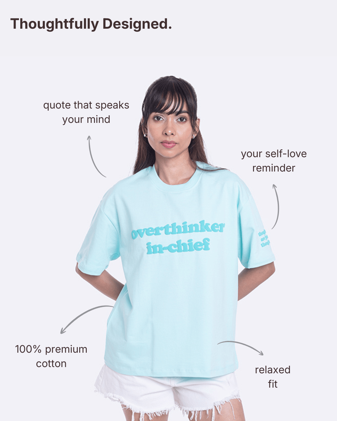 The Overthinker-in-Chief Tee is for the ones whose minds never really clock out—the replay-ers, the what-if analyzers, the spiralers who care a little too much because they feel a little too deeply. Crafted from 240 GSM Looper Knit (Unbrushed), 100% Cotton, this tee is midweight, breathable, and grounding. The oversized, relaxed fit falls softly, giving you the comfort your mind rarely gives you on its own.