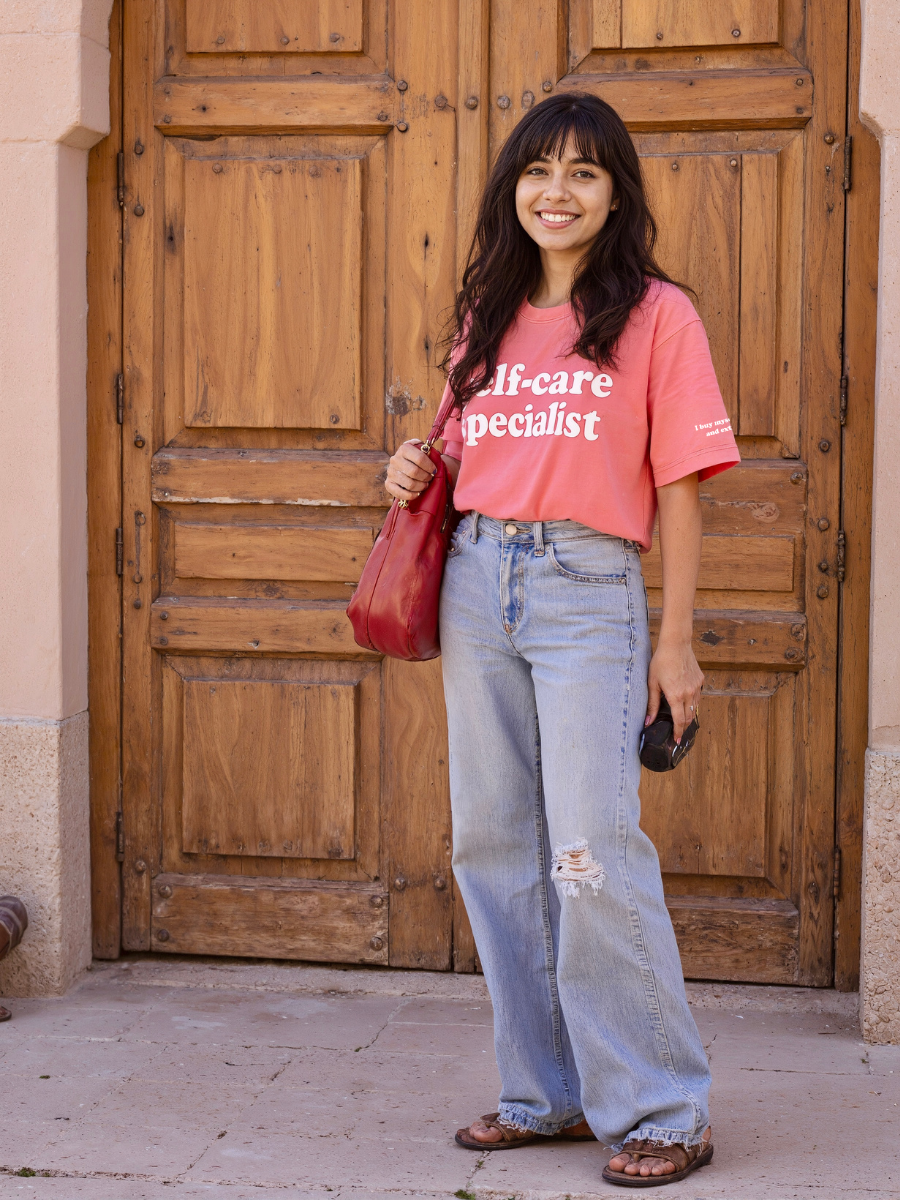 This pink tee is your cheeky, comfy reminder that taking care of yourself is a full-time job—and you’re nailing it.